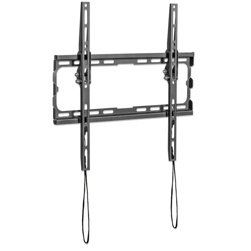 This tilting TV Wall Mount from Manhattan safely holds your TV and offers a toolless 0 to -8° tilt adjustment for optimized views. It fits flat LCD, OLED or plasma TVs up to 70" and weighing up to 45 kg (100 lbs.) with VESA compliance up to 400x400. You're all set for a confident above-the-floor installation with intuitive snap-in spring locks with release cords that let you easily and securely put the TV in place. It's ideal for residential, office, hospitality, classroom, conference room, digital signage and other commercial applications.