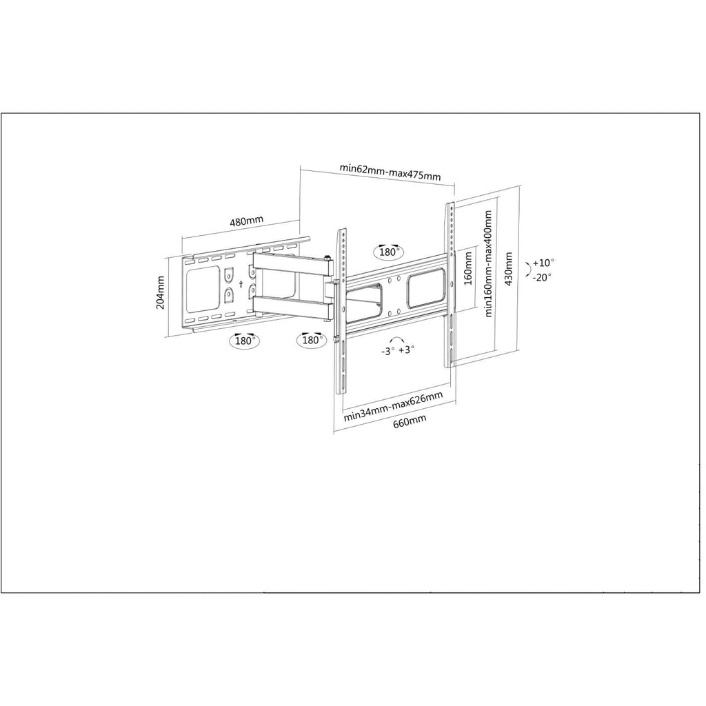 Overcome an odd floor plan, annoying glare or awkward furniture placement that can limit the enjoyment of your flat-panel TV. The Manhattan Universal Flat-Panel TV Full-Motion Wall Mount offers precise adjustments to keep images, contrasts and colors clear, sharp and defined. VESA-compliant and constructed of quality materials, this articulating wall mount fits a range of display sizes for a secure and confident above-the-floor TV installation. It's the perfect fit for mounting a TV in your living room, bedroom or den, as well as for commercial uses in hotels, classrooms, conference rooms, for digital signage and more. Wherever you install it, the Manhattan Universal Flat-Panel TV Full-Motion Wall Mount puts the best TV viewing experience front and center.
